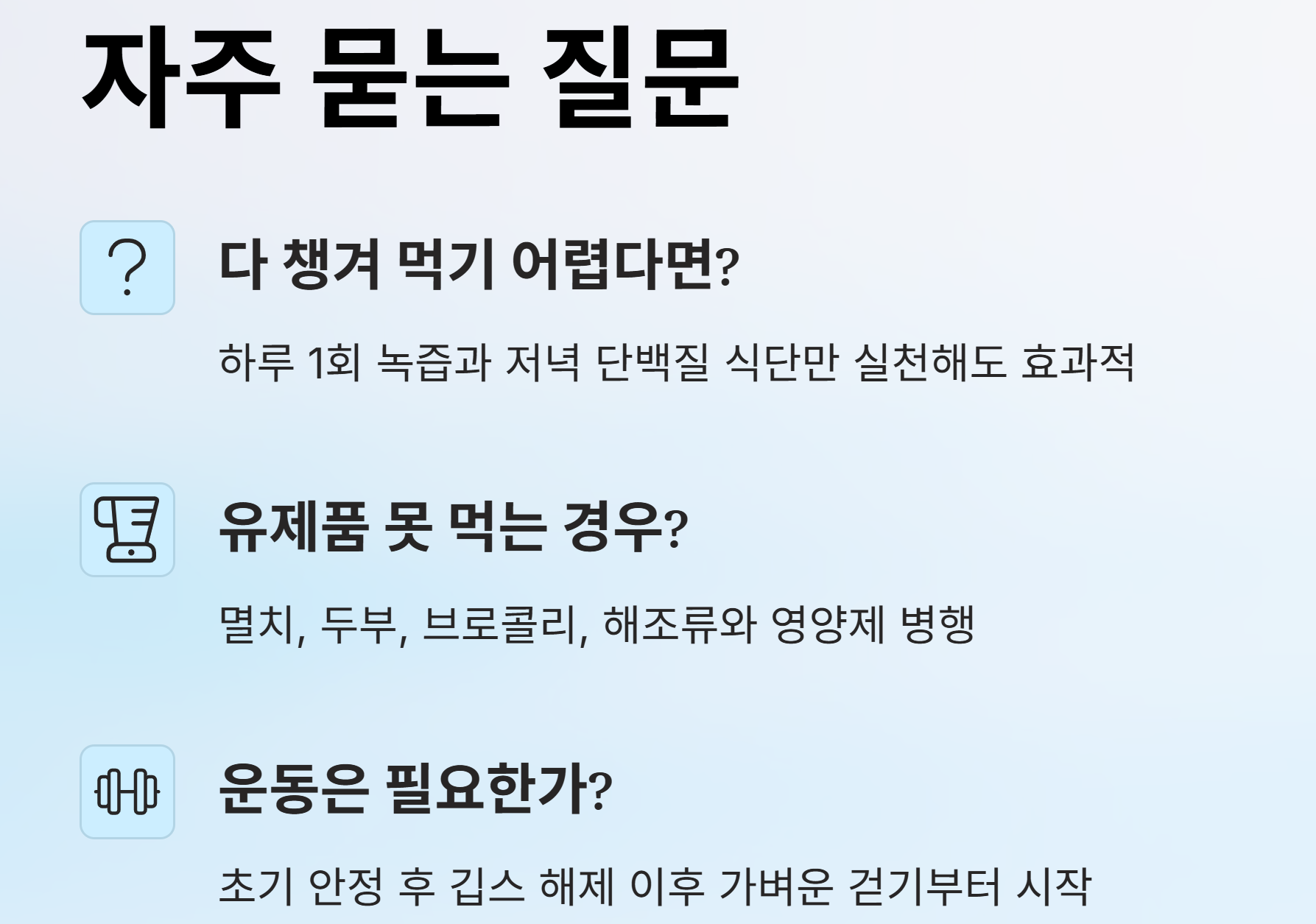 적절한 식사와 영양소 섭취만으로도 회복 속도는 충분히 달라질 수 있습니다.