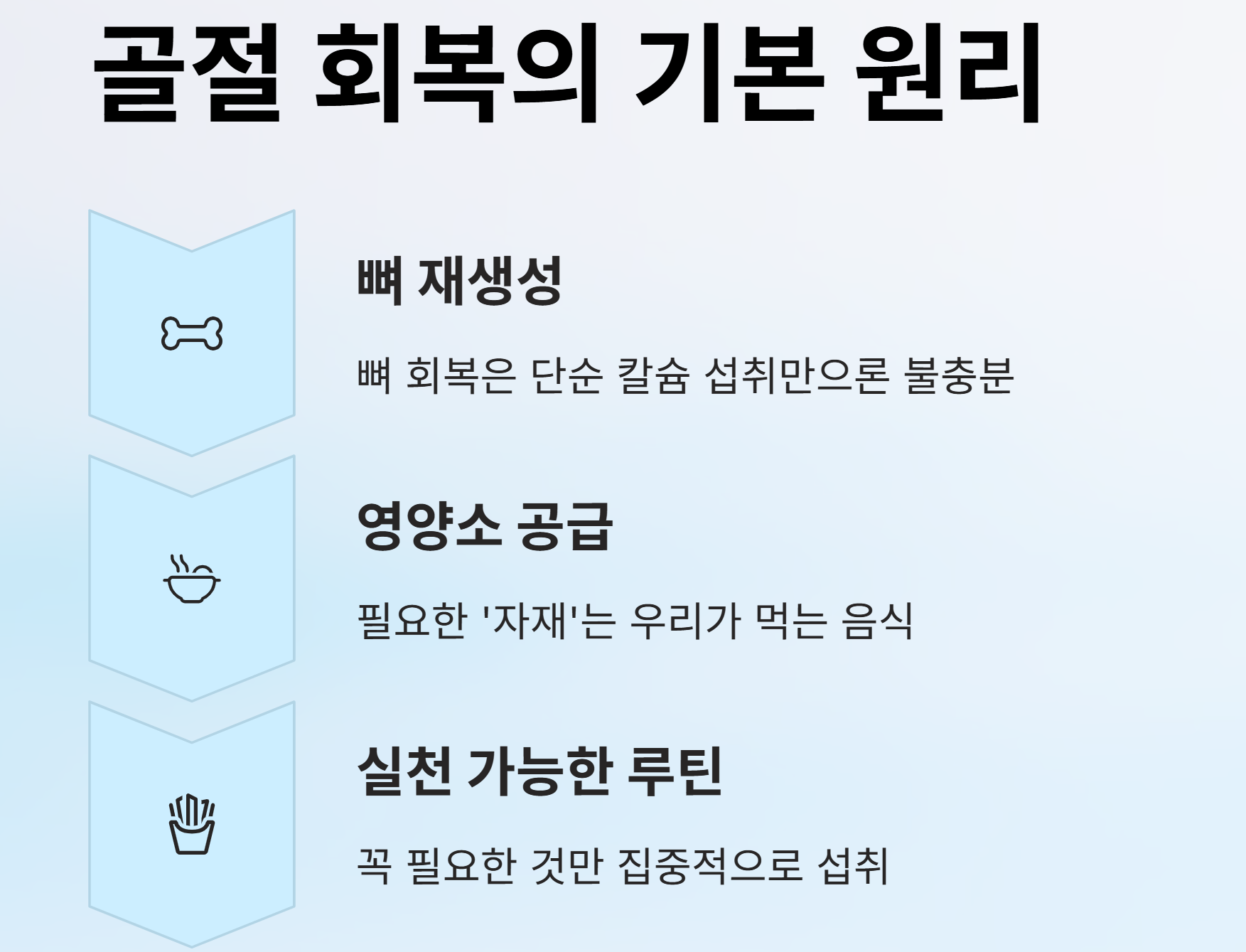 중요한 건 뼈 회복에 도움이 되는 재료를 식단과 생활 속에서 ‘어떻게 꾸준히 실천할 수 있느냐’입니다.